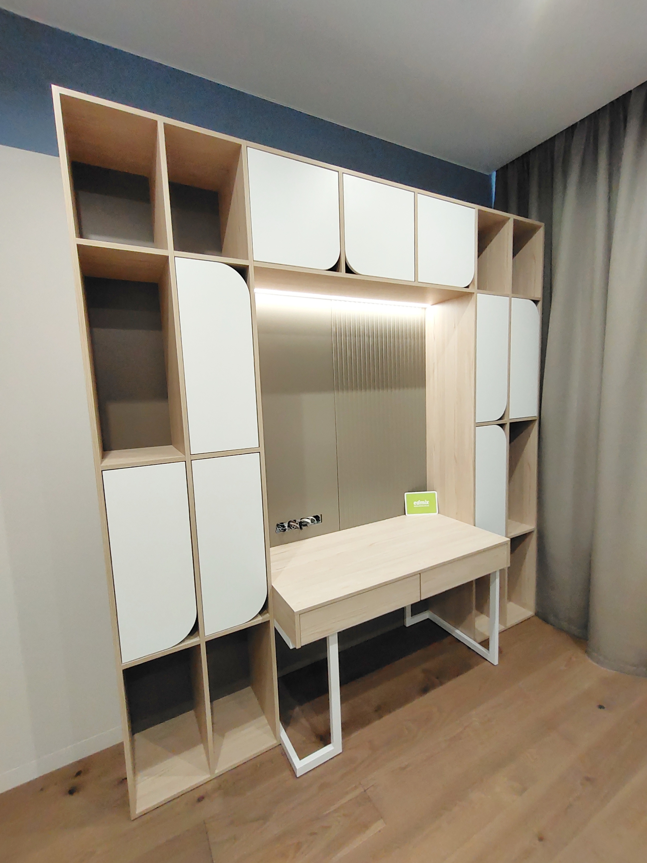Комплект меблів у дитячу в стилі "лагідний Loft". Всі матеріали европейського рівня, мають екологічний сертифікат, конструкція надійно закріплена, тут багато полиць як для книжок так і для іграшок, завдяки вмонтованій LED підсвітці нашому Мишку буде краще навчаться доброго і корисного для суспільства. Побажаймо успіхів Мишку!